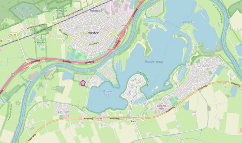 De rivier de IJssel loopt vlak achter het park langs, deze is met een fietspontje over te steken om in Rheden de komen.